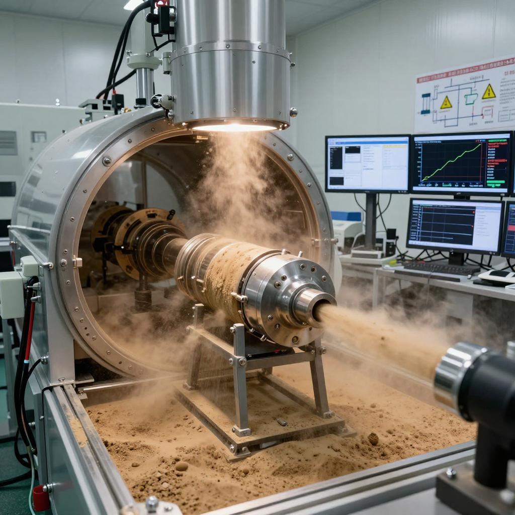 2026-02-11高速砂尘冲蚀试验室,是一种能够在可控、可重复条件下,模拟自然界或工业环境中高速气流携带固体颗粒(砂、尘、冰晶等)对材料表面造成冲击、切削、磨损和侵蚀的专业试验设施。它不仅是简单的“喷砂”,而是对颗粒速度、粒径、浓度