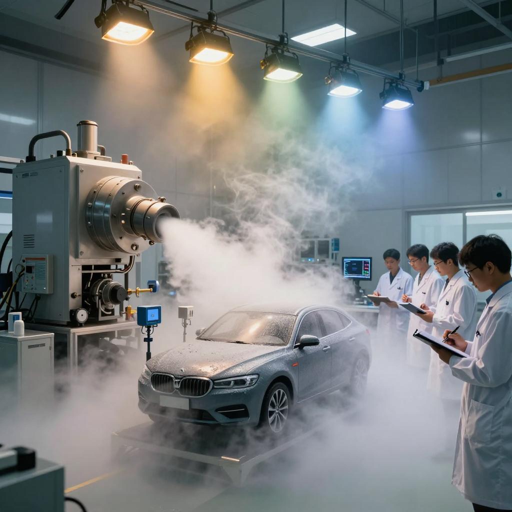 2026-02-24整车云雾环境模拟实验室是一种用于模拟高湿、多雾、降雨、低温或高温高湿等复杂极端气候条件的高精度试验设施,主要用于评估汽车在这些环境下的密封性、电气系统可靠性、材料耐候性等关键性能。这类实验室通过人工制造可控的云雾环境,为汽车的研发、测试和